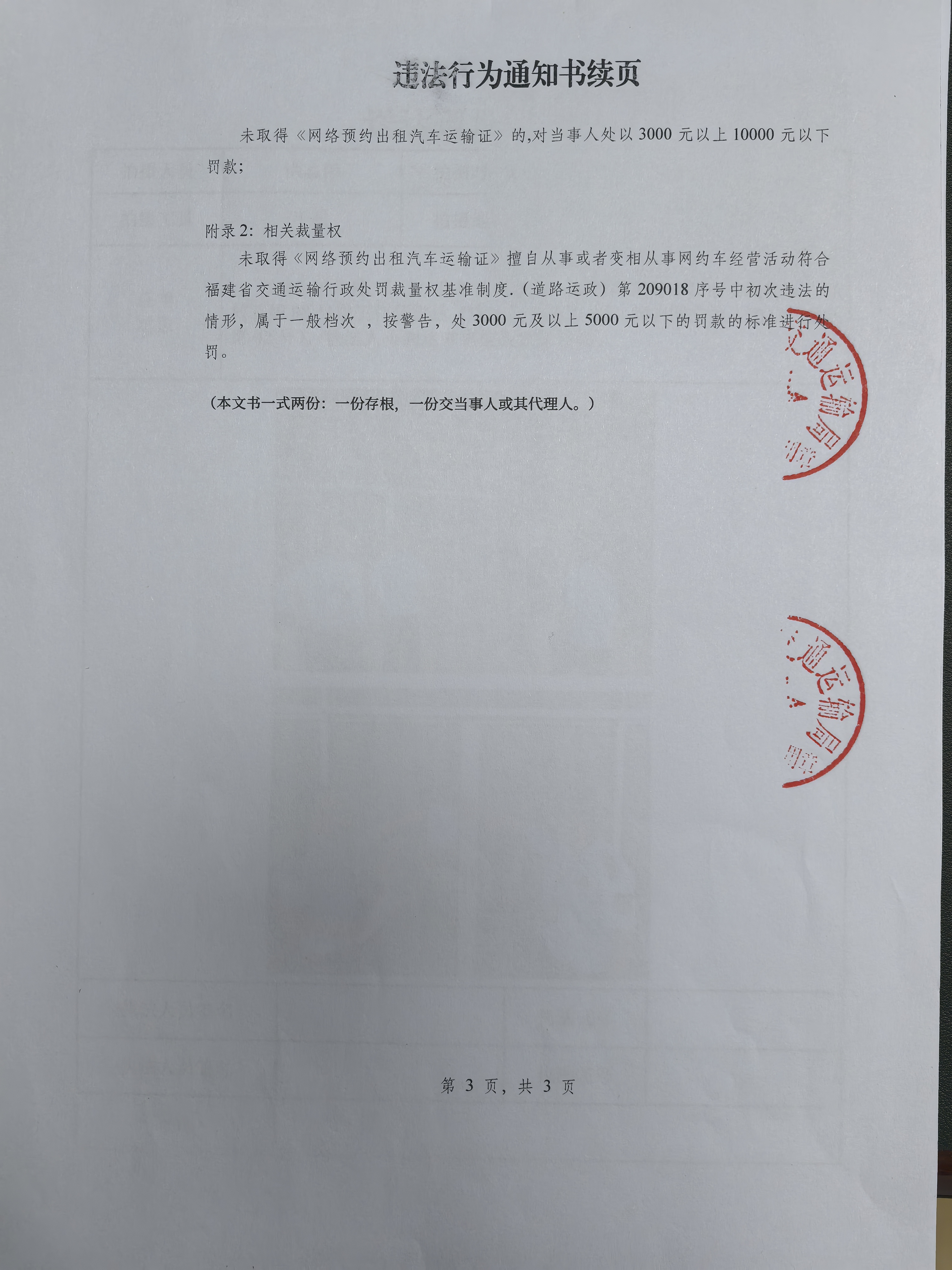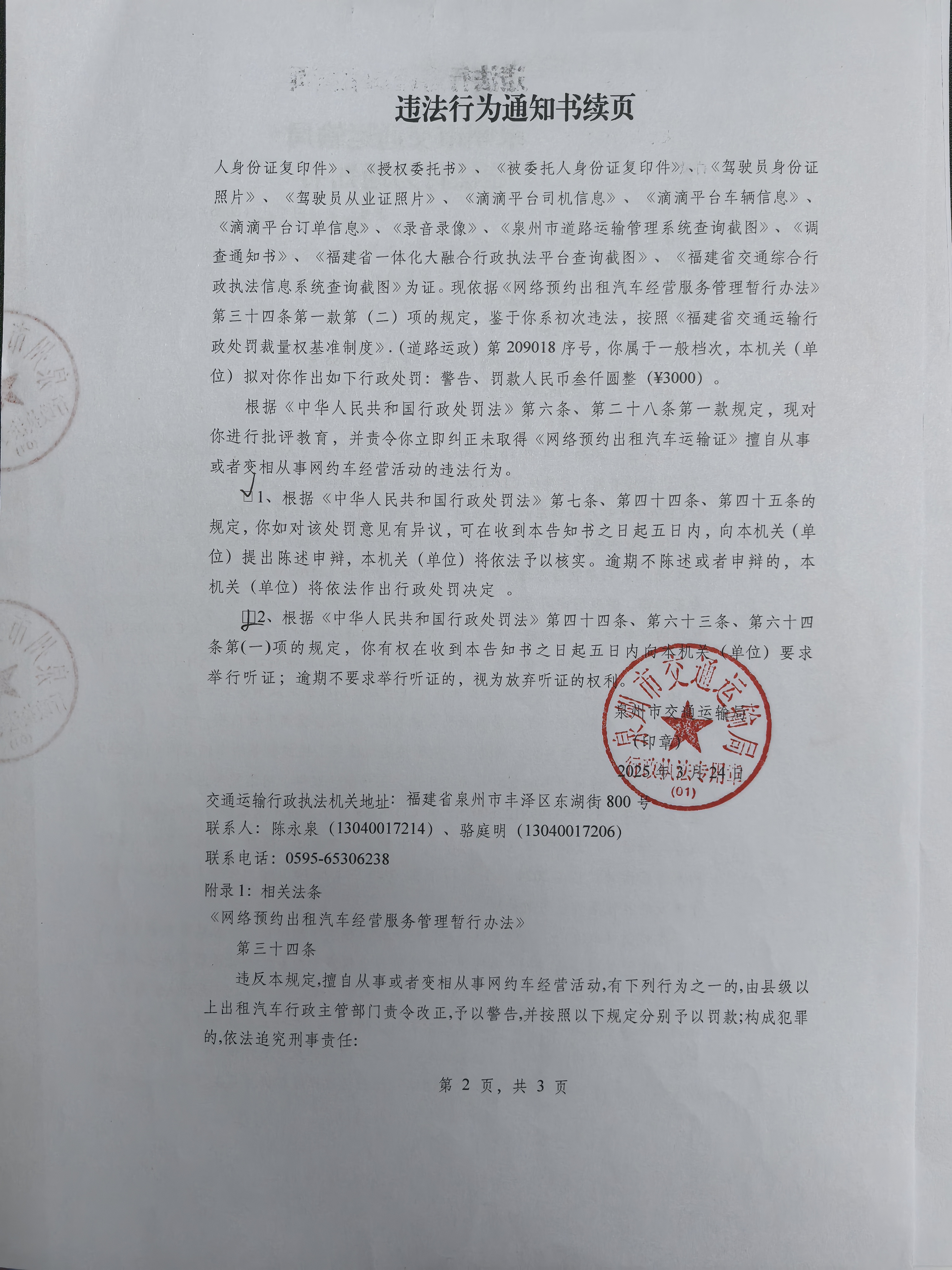 本机关于2025年3月24日对你(单位)未取得《网络预约出租汽车运输证》擅自从事网约车经营活动案拟作出警告,并处以罚款人民币叁仟元整的行政处罚决定。同时,根据《中华人民共和国行政处罚法》第六条、第二十八条,对你(单位)进行批评教育,并责令你(单位)立即纠正上述违法行为。