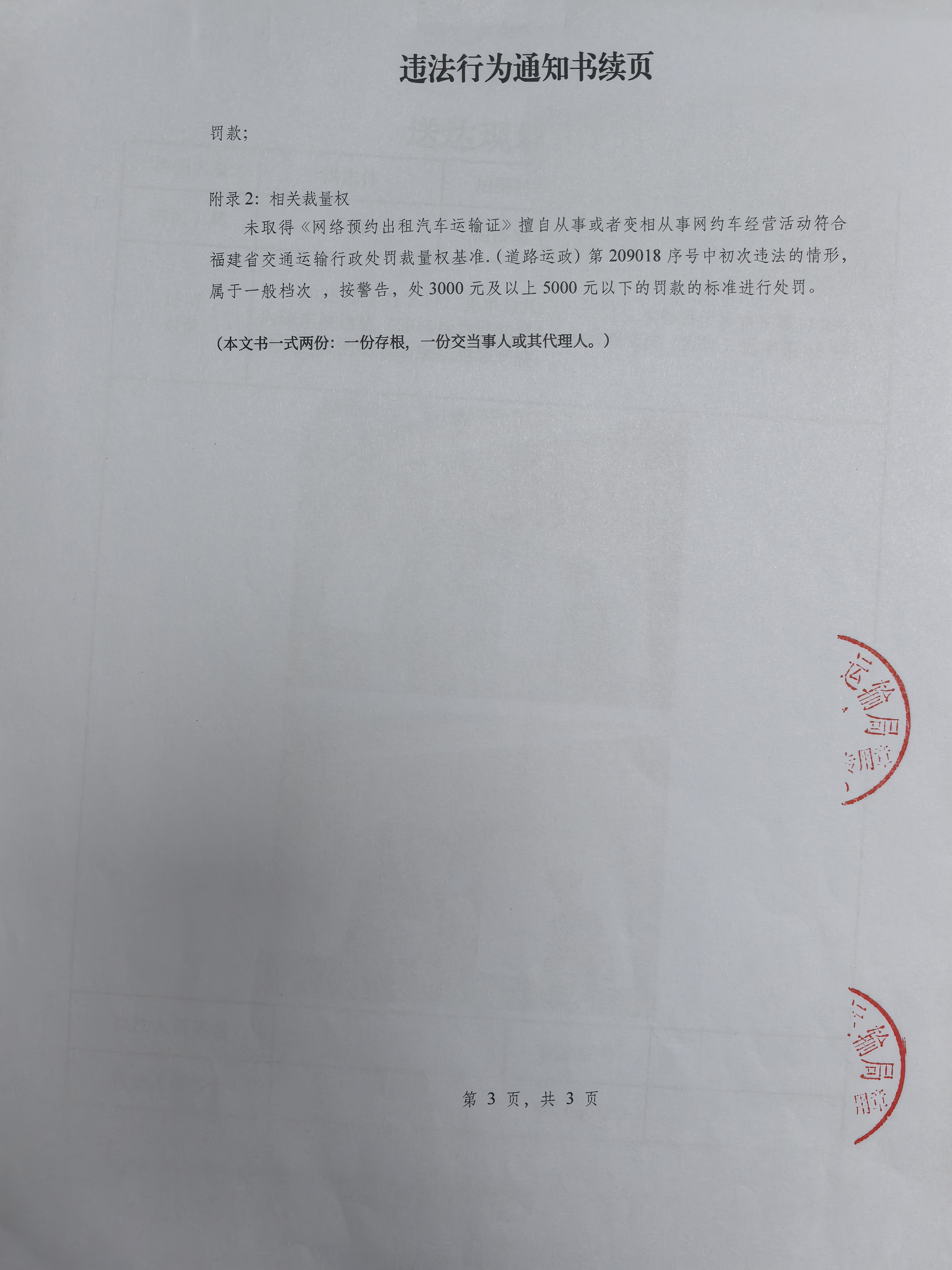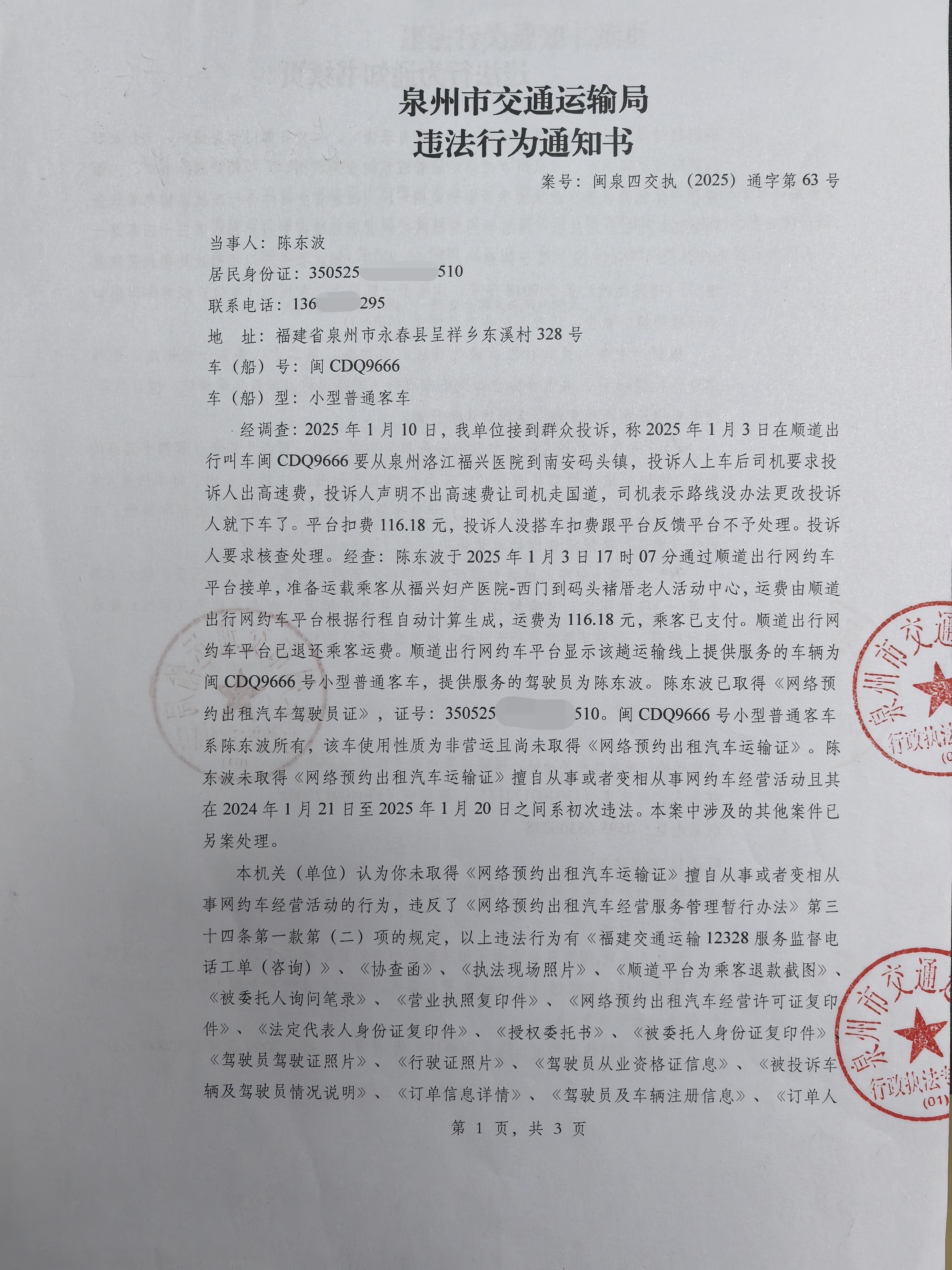 附件:《违法行为通知书》{闽泉四交执(2025)通字第63号}