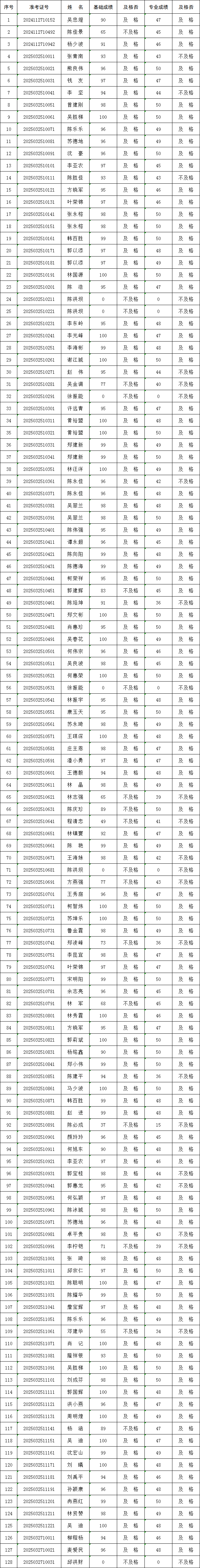 128名道路危险货物运输从业人员考试成绩汇总。