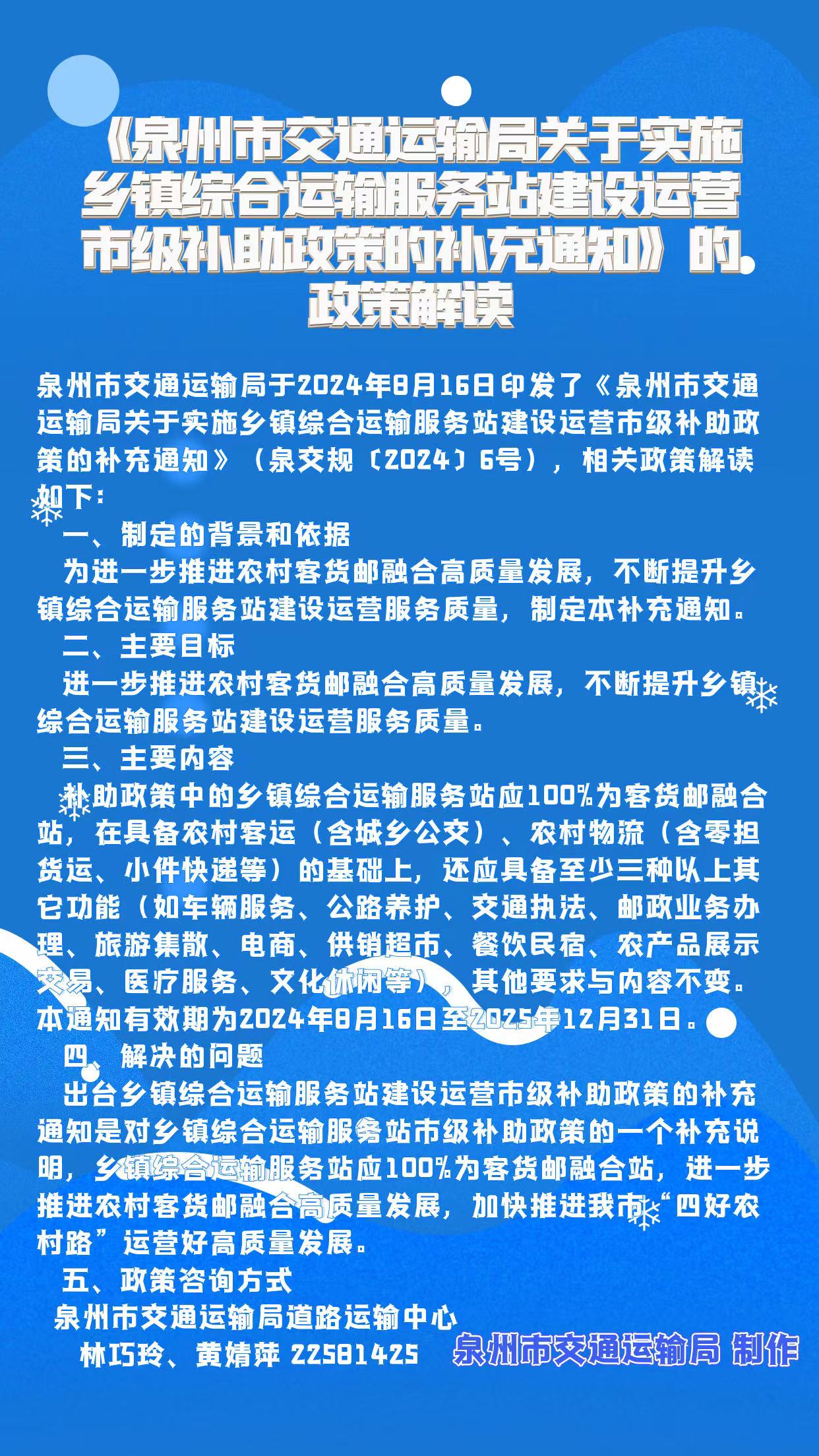 - 《学生妹制服色情 关于实施乡镇综合运输服务站建设运营市级补助政策的补充通知》的政策解读 2024-08-16